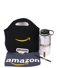 Amazon used a practical lunch tote for their recruiting kit. Inside it has all the classics: tee, bottle, lip balm. sticker and pen.