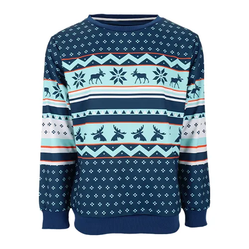 This is not your standard polyester garment. Our fabric has an almost satin-like finish on the outside and a comfy brushback feel on the inside. This material allows for allover full color printing, so you can go as wild as you want. This material is a lower cost option compared to a knitted “ugly sweater” so you can still have fun with it but at a lower price point.