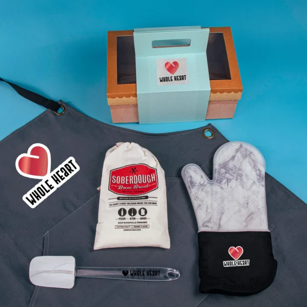 A perfect home-experience gift, the ‘Baking me Crazy’ kit comes with a gourmet cheesy garlic bread mix by USA-based, small-batch maker, Soberdough. It also comes with all of the promo product trimmings! A branded premium oven mitt, silicone spatula, and apron packaged inside a cute, picnic-inspired, custom-branded gift box. Perfect for homeware brands, real estate brands, and employee appreciation, this food gift will always leave a lasting impression.
