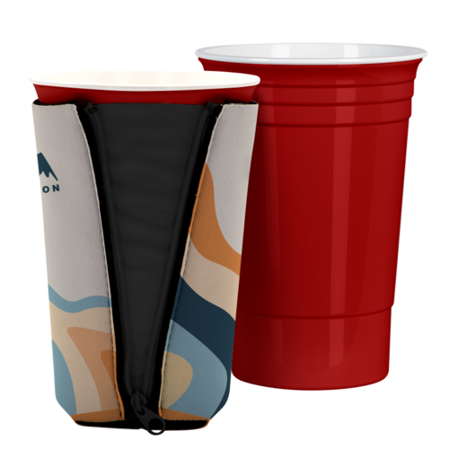 In the wild, a chameleon can change color to adapt to its environment. Well move aside, lizard! At a tailgate, the ZIPSIP Tall Can Cooler can change its size to adapt to any beverage. Top that! Magnets keep tall cans, slim cans and energy drinks in place. Long neck bottles, solo cups, pint glasses and coffee drinks fit in with the crowd thanks to the cooler’s two zippers with canvas gussets. With its sturdy neoprene structure and your awesome logo displayed in full color dye-sublimation, they’ll be a go-to from home run to touchdown all year round.