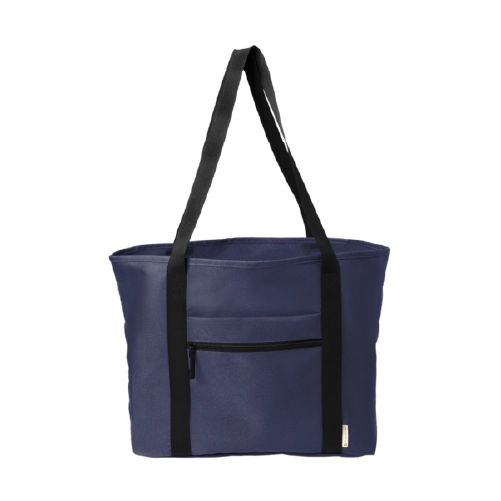 Features: • 100% recycled 600D polyester • Front zippered pocket • Web handles • Exterior woven label that says 100% RECYCLED FABRIC • Dimensions: 13″h x 14″w x 5.5″d; Approx. 1,001 cubic inches