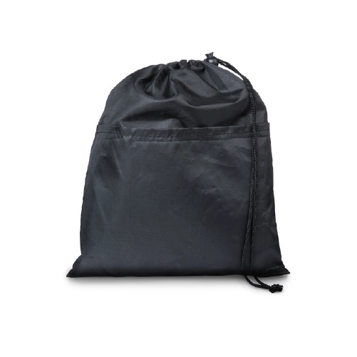 • Polyester pouch with front open pocket and drawstring closure